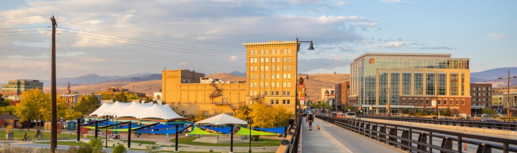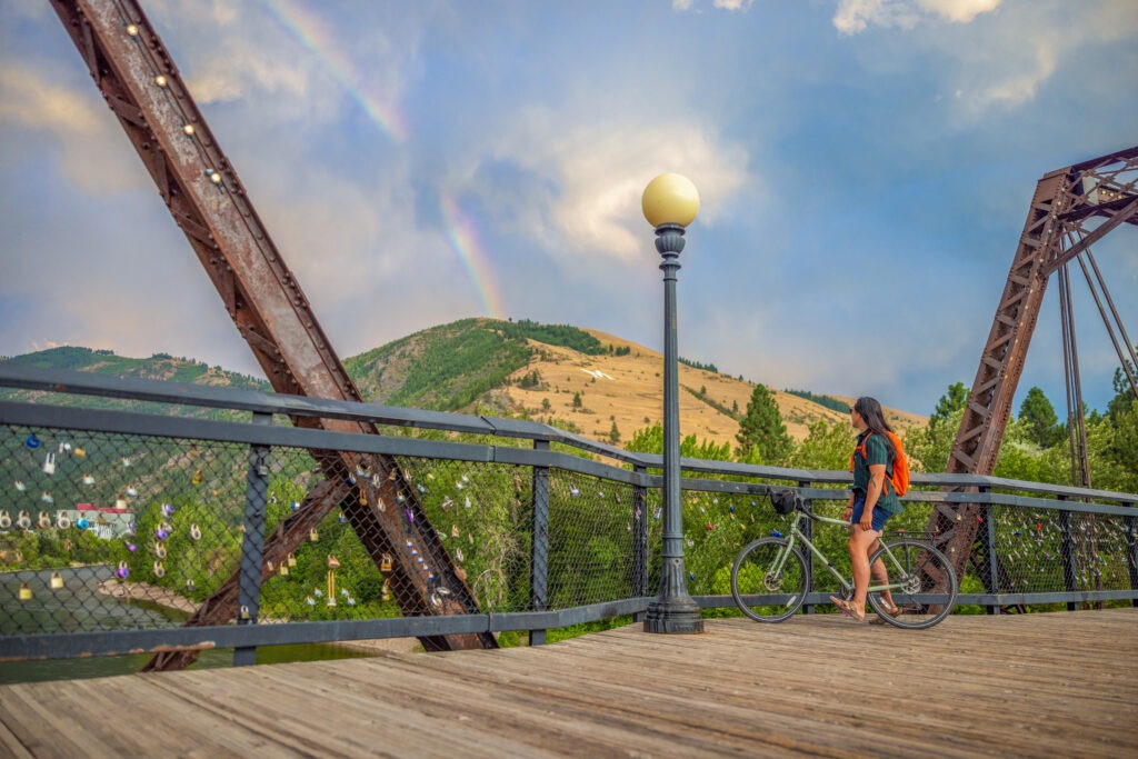 The Higgins Street Bridge crosses over the Clark Fork River and connects Missoula while overlooking some of the most recognizable views in town. On the east side of the bridge, Mt. Sentinel while to the west is Brennan's Wave, Caras Park, and the Old Milwaukee Depot and to the north is the Wilma Theater.