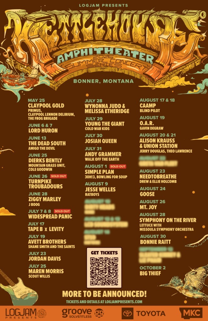 Our goal is always to deliver the most exciting and diverse lineup possible for our community and for visitors traveling to experience a show at the KettleHouse Amphitheater. If there’s an artist you’d love to see perform in Missoula, we always encourage fans to send us their suggestions at https://logjampresents.com/
